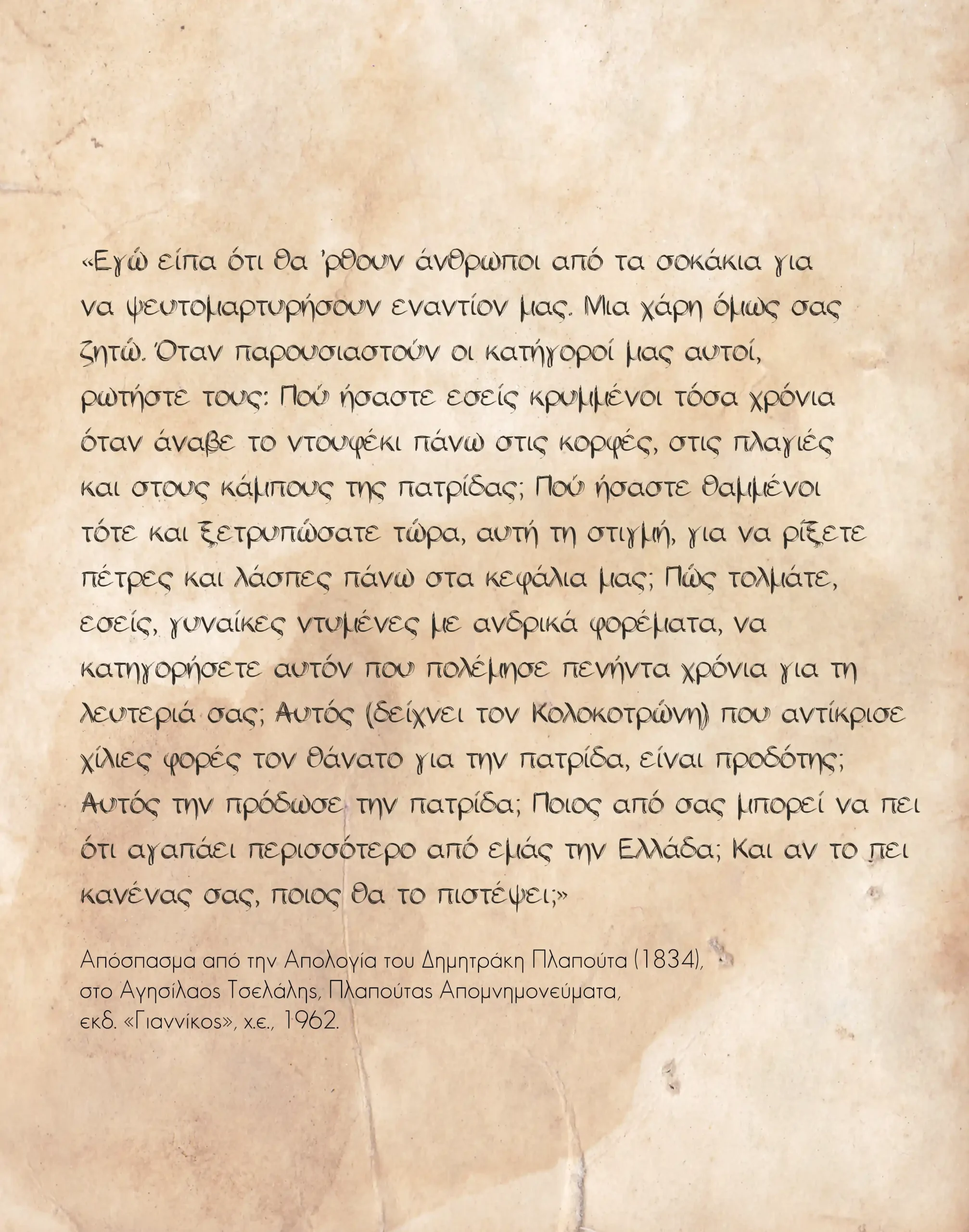 Ο Δημητράκης Πλαπούτας ή Κολιόπουλος ήταν μέλος της Φιλικής Εταιρείας, εξέχων οπλαρχηγός της Ελληνικής Επανάστασης, με συμμετοχή σε σημαντικές επιχειρήσεις στην Πελοπόννησο και σταθερή προσήλωση στον Αγώνα για την ανεξαρτησία. Ακολούθησε πολιτική σταδιοδρομία και συνέδραμε στη συγκρότηση του νεότερου ελληνικού κράτους.