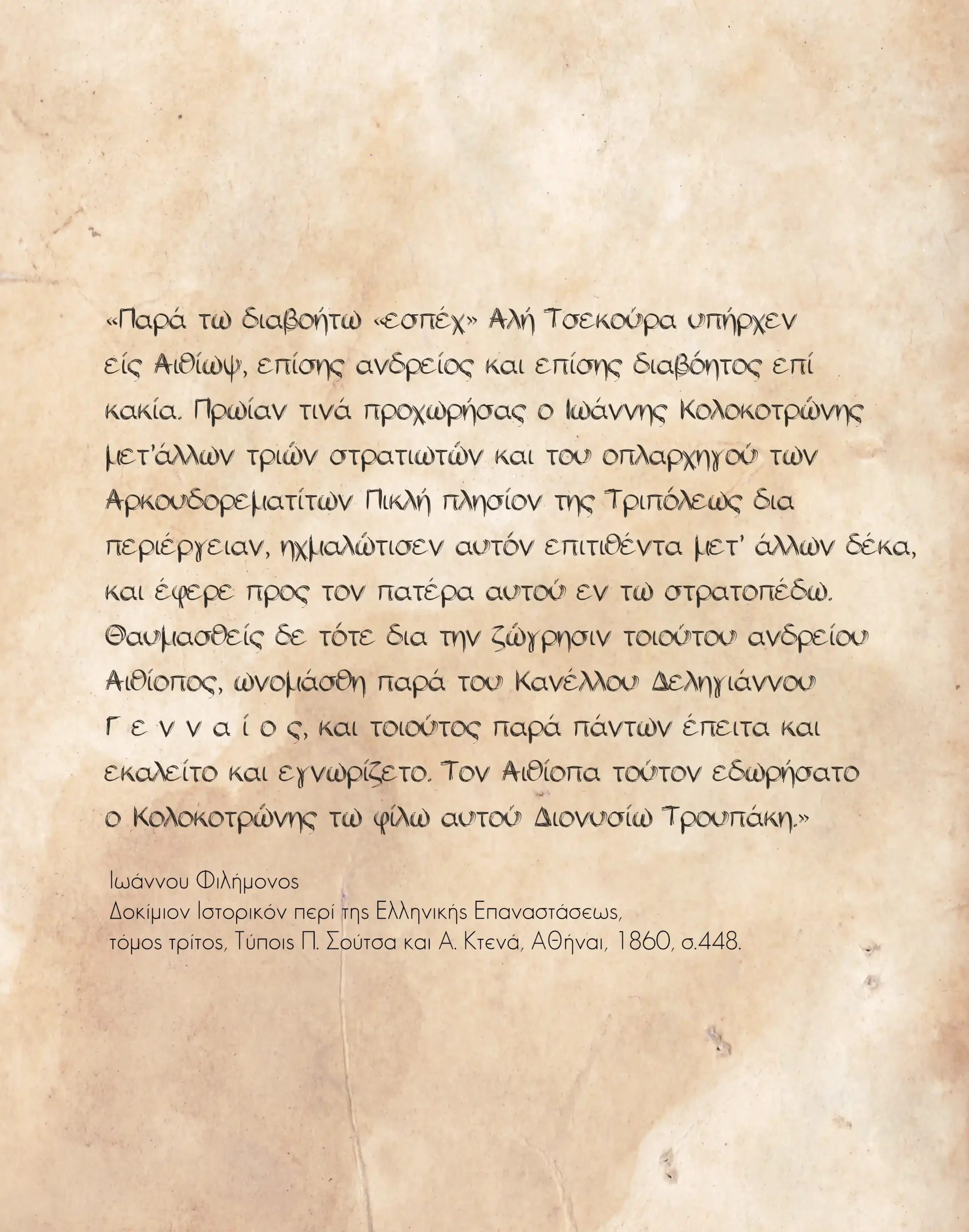 Ο Γενναίος Κολοκοτρώνης, δευτερότοκος υιός του Θεόδωρου Κολοκοτρώνη, ήταν ένας από τους νεότερους αγωνιστές του 1821. Διακρίθηκε για τη μαχητικότητα, το θάρρος, την αφοσίωση και την υπακοή στον πατέρα του. Μετά την Ανεξαρτησία ακολούθησε στρατιωτική και πολιτική σταδιοδρομία· διετέλεσε υπουργός και αργότερα πρωθυπουργός επί Όθωνα (1862). Αποτελεί μία από τις χαρακτηριστικές μορφές της πρώτης γενιάς πολιτικοστρατιωτικών του νεοελληνικού κράτους.