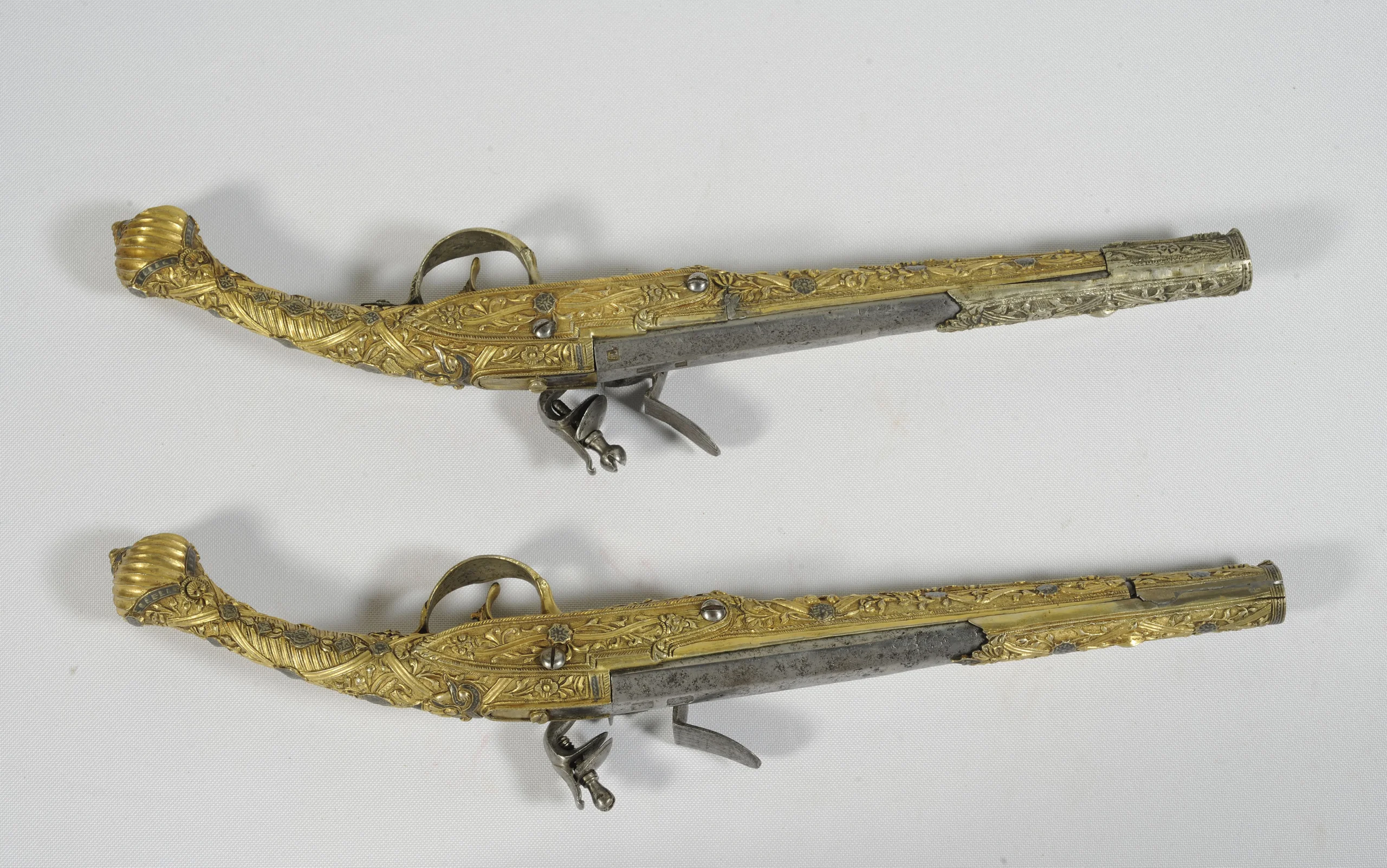 Το πιστόλι του Πετρόμπεη Μαυρομιχάλη, με έκτυπη επίχρυση διακοσμητική επένδυση.